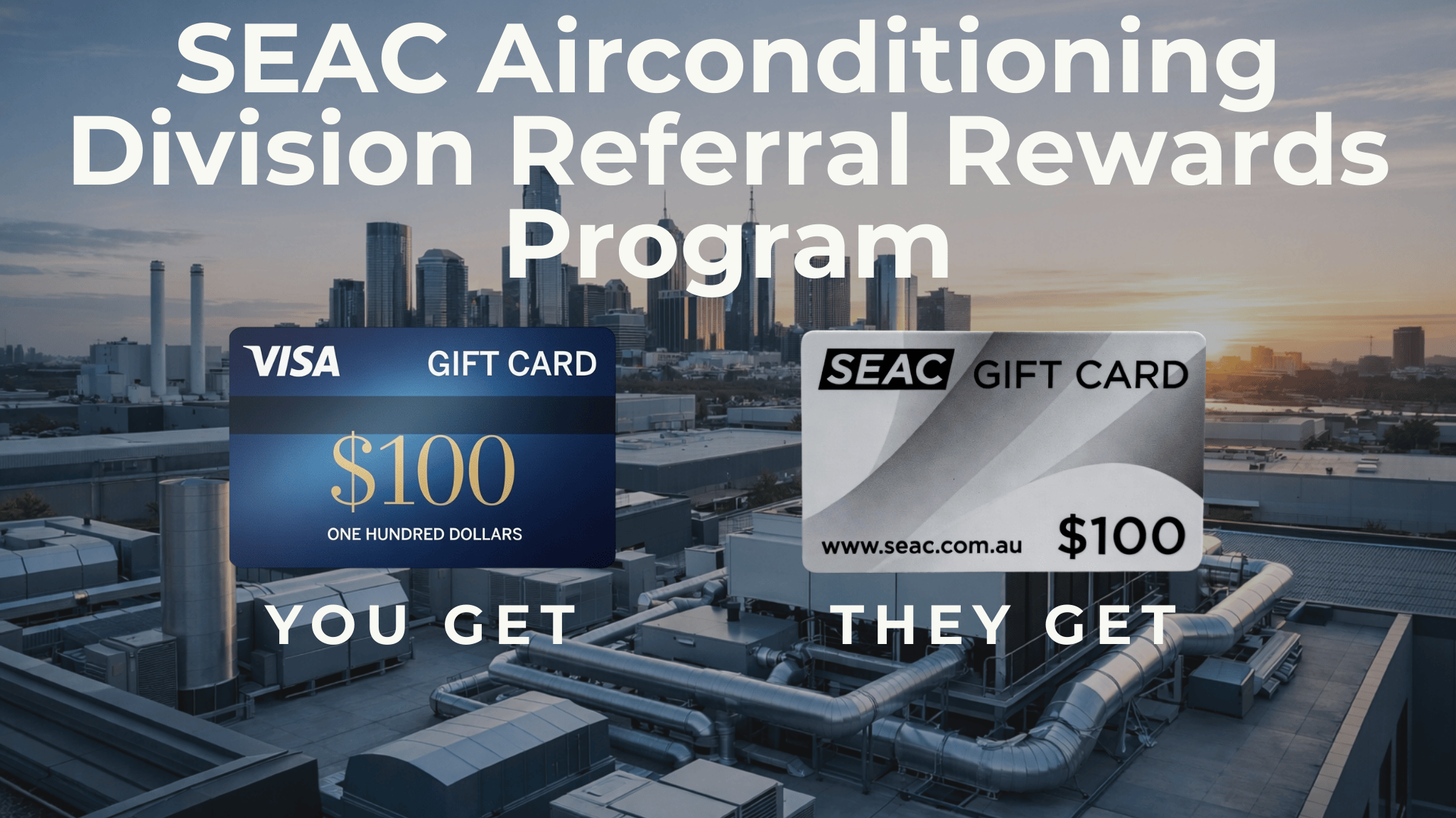 - Once their job is completed, we’ll apply their $100 (or $200) SEAC Voucher directly to their invoice and send your $100 (or $200) Visa Gift Card.
